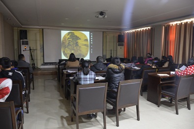 王伟老师首先从中国画的笔墨技法开讲。笔墨作为中国画关键一环,在每一笔、每一划中浸透了中国画的全部特征。中国画追求书法用笔、刚柔劲健、毛涩圆厚、快慢轻重、提按顿挫的变化;追求用墨的干、湿、浓、淡、重、焦、枯、润的韵味;追求笔、墨、色在宣纸上出现的自然复杂变化和意想不到的情趣,快慢轻重、提按顿挫的变化。接下来,王伟老师通过中国画的四要素:诗、书、画、印,阐述美术定义,指出学好中国画,就要学会中国诗词,提高文学修养,常读书,了解中国绘画史,了解中国画精髓,从而揭示中国画的内涵,以中国特有的毛笔技巧,以墨调水和色,在特有的中国纸上表达作者心境的文化艺术。