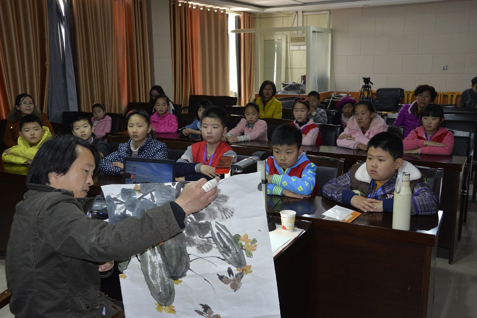 中国画是我们民族的象征,民族的骄傲,为了展示中国画独特的魅力,在广大青少年中间普及、推广中国画传统文化,提高美术爱好者的艺术修养, 3月26日,由《牡丹晚报》小记者中心主办,由牡丹区文化馆、牡丹区图书馆承办,由牡丹区青年美术家协会、牡丹区电视台艺苑流光栏目协办的《牡丹晚报》小记者书画团中国画基础技法培训班在牡丹区图书馆国学讲堂开讲。培训班主讲老师由山东省美术家协会会员、牡丹区文化馆副馆长、牡丹区青年美术家协会主席王伟担任,来自《牡丹晚报》小记者书画团30余名小记者参加了此次培训。