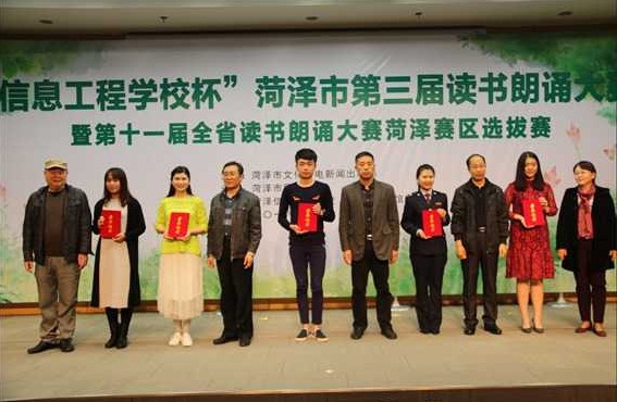 4月9日,由菏泽市文化广电新闻出版局主办,菏泽市图书馆承办,菏泽信息工程学校和各县区图书馆协办的“信息工程学校杯”菏泽市第三届读书朗诵大赛暨第十一届全省读书朗诵大赛菏泽赛区选拔赛在菏泽市图书馆报告厅举行,来自全市各县区和市直各部门、各行业的59组选手参加了这次比赛,经过专家评委的综合评比,共评出一等奖3个、二等奖5个、三等奖7个、优秀组织奖11个、优秀奖若干。