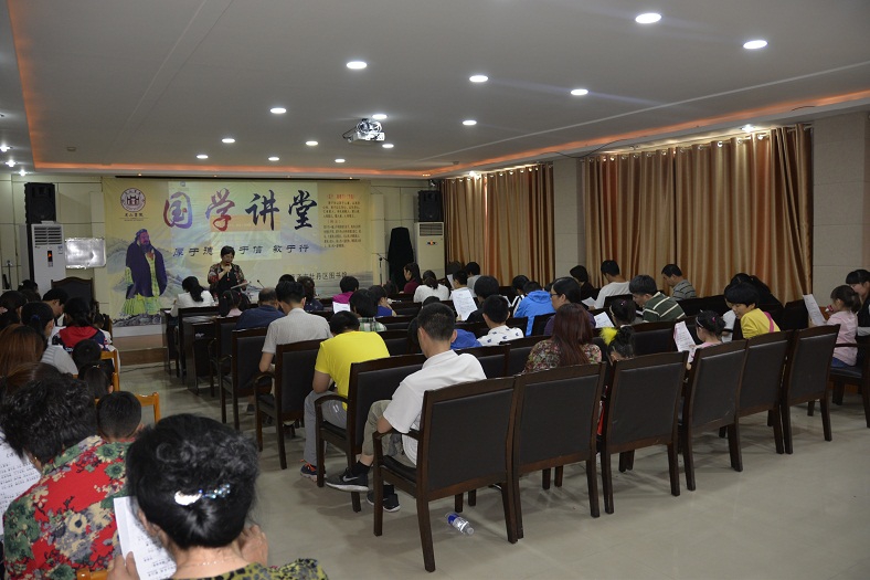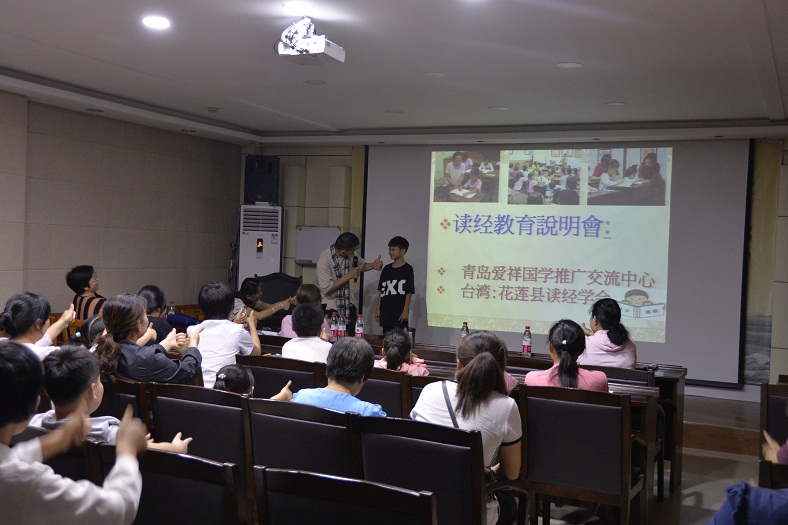 为了进一步弘扬民族传统,传承国学经典文化,营造积极向上、高雅清新、健康文明的国学经典诵读氛围,6月23日下午,牡丹区图书馆特邀青岛爱祥国学推广交流中心主任、台湾花莲读经学会会长、台湾知名国学爱好者简文清先生在尼山书院国学讲堂开展了以“吟诵经典 传承美德”为主题的读经教育说明会。近40名爱祥国学义工老师和牡丹区图书馆尼山书院国学亲子读诵班的学员亲临现场听取了这次说明会。