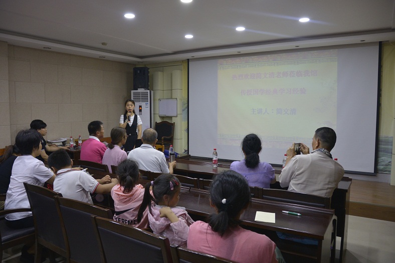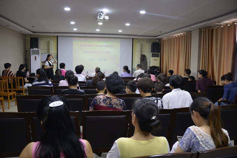 说明会上简先生节选了《论语》、《大学》、《三字经》、《弟子规》、《陋室铭》精彩篇段作为诵读范例,积极引导大家认真学习经典,宣扬中华传统美德。并以团队互动的形式使现场的每一位老师和学员都深刻感受到国学文化的博大精深。参会人员用饱满真挚的情感,铿锵有力的声调诵读中华经典,演绎传统美文,让我们领略到中华传统文化之魅力,感受中华千年文字的力量。伴随琅琅诵读声和现场此起彼伏掌声,读经教育说明会圆满结束。