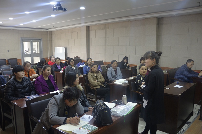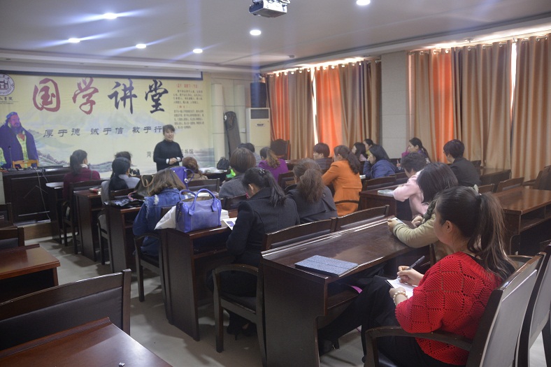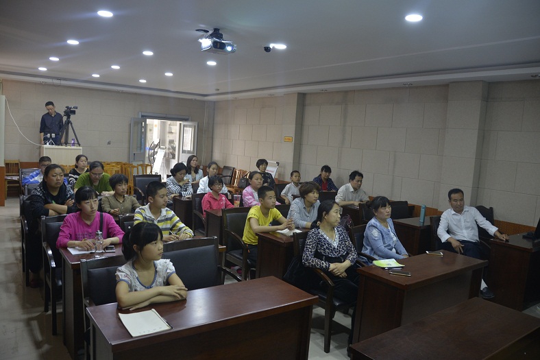 培训班在庄严的国歌声中拉开了帷幕,仁和书院国学讲师李昕芮领读了韩愈的《师说》,牡丹区图书馆党支部书王艳英向大家简单介绍了牡丹区图书馆尼山书院建设与活动开展情况,民革党员、菏泽市传统文化促进会理事、菏泽市图书馆尼山书院国学讲师、国学经典公益推广工作者、国家旅游局名导讲师、孝行天下讲师团成员、山东卫视特约主持人王蓉晖老师从国学基础知识、国学礼仪、朗诵技巧、国学教学方法、为什么要学习国学经典等方面向大家进行讲述,并对亲子诵读班上课流程进行了明确。要求亲子诵读班的家长们一定陪伴孩子一起诵读,孩子也渴望家长的陪读,亲子陪读,温馨亲密。诵读方法要灵活多变,可以领读、齐读、分组比赛诵读、接龙读、接句接字读等。培训结束后,大家还针对国学教学、亲子诵读班的开办展开了讨论和交流。