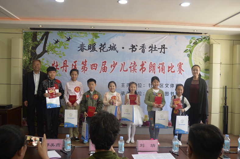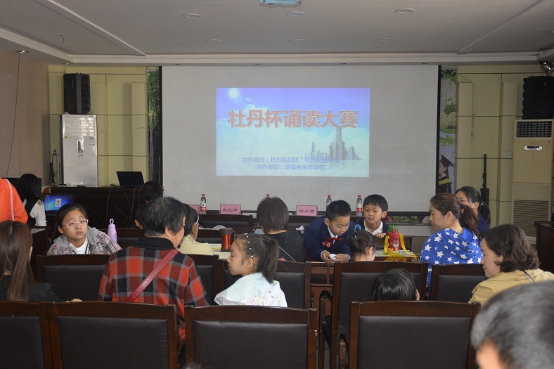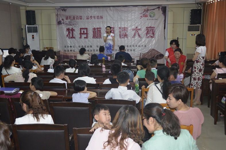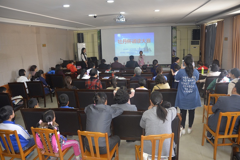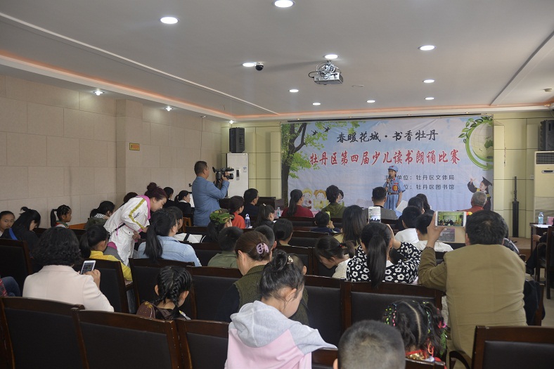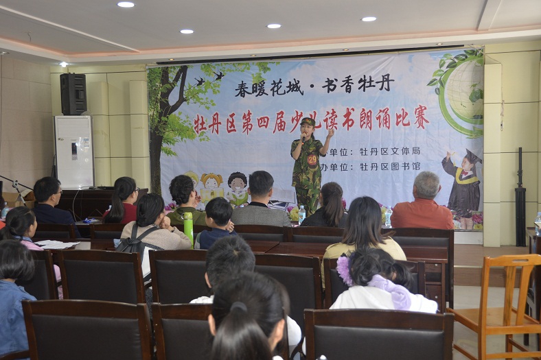 为贯彻落实《中华人民共和国公共文化服务保障法》,进一步发挥公共图书馆传承文明、开明启智的社会功能,通过全民参与、全民阅读的方式,在全社会营造团结和谐、奋发进取的氛围,让广大少年儿童从小养成“爱读书、读好书、好读书”的良好习惯,展现广大少儿儿童积极向上的精神风貌,丰富广大少儿儿童的精神文化生活。5月21日上午,由牡丹区妇联、牡丹区图书馆、牡丹区家庭教育研究会联合主办,菏泽电视少儿艺术团、北京国际婚纱摄影、孔子学院菏泽分院慈母家长学校、山东省青少年素质教育重点实践基地协办的“牡丹杯诵读大赛”预赛第二场在牡丹区图书馆二楼国学讲堂举行。