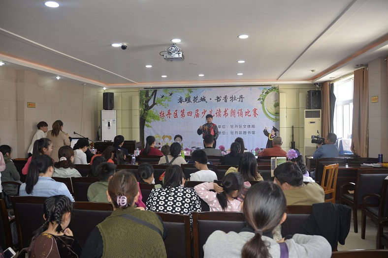 为贯彻落实《中华人民共和国公共文化服务保障法》,进一步发挥公共图书馆传承文明、开明启智的社会功能,通过全民参与、全民阅读的方式,在全社会营造团结和谐、奋发进取的氛围,让广大少年儿童从小养成“爱读书、读好书、好读书”的良好习惯,展现广大少儿儿童积极向上的精神风貌,丰富广大少儿儿童的精神文化生活。在第22个“世界读书日”来临之际,由牡丹区文体局主办、牡丹区图书馆承办的以“春暖花城·书香牡丹”为主题的牡丹区第四届少儿读书朗诵比赛,于4月22日上午在牡丹区图书馆国学讲堂举行。本次比赛旨在展示广大少年儿童的读书成果,激发少年儿童阅读热情,引导广大少儿小朋友“爱读书、读好书、善读书”,从小养成自觉阅读习惯。