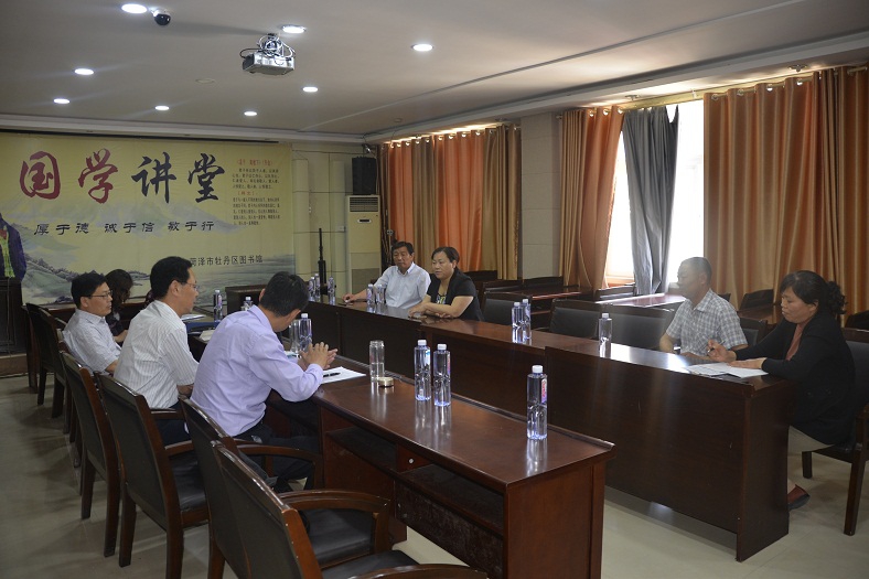 5月16日,以山东省图书馆副馆长周玉山为组长,淄博市图书馆馆长刘玉湘、副馆长丁雷,潍坊市图书馆副馆长王希兆为成员山东省评估督导组,到牡丹区图书馆进行了评估督导。菏泽市文化广电新闻出版局文化科科长季增伟,菏泽市图书馆副馆长吕晓娟,牡丹区政府副区长申瑞萍,牡丹区文化体育局党组书记、局长朱启允陪同参加了检查督导。