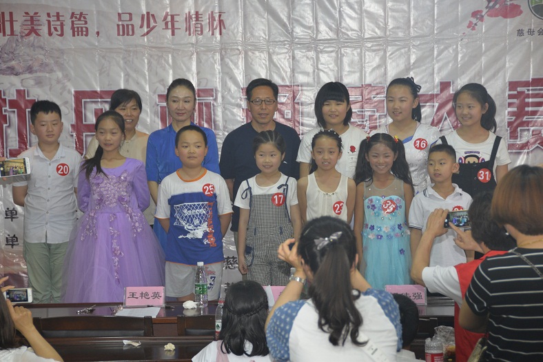 菏泽市广播电视台导演、菏泽电视少儿艺术团负责人、《星光少年》栏目制片人、中华诵读联合会会员杨小童,菏泽市牡丹区国税局书画协会会长、菏泽市妇联国之韵旗袍会常务副会长、艺术总监、菏泽市国标舞协会旗袍专业委员会主任李萍,牡丹区图书馆支部书记王艳英担任本场预赛评委。