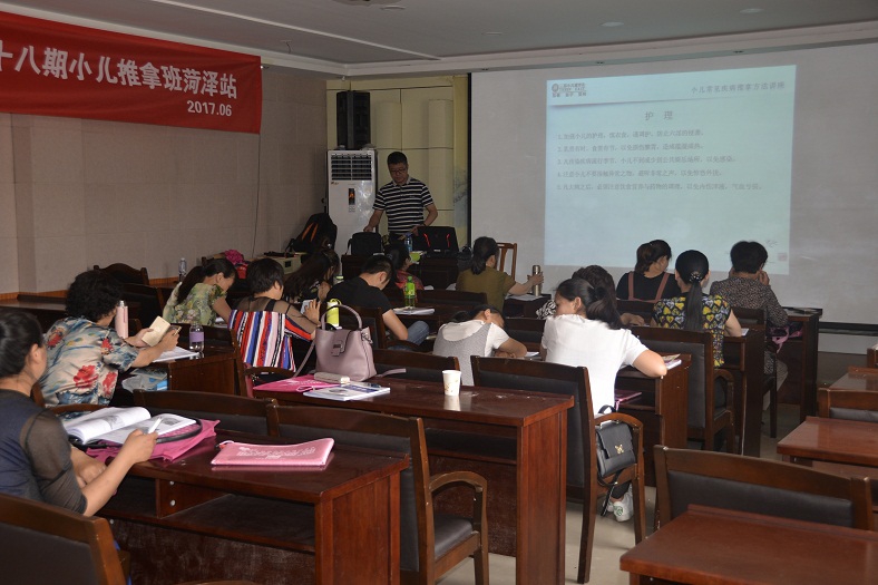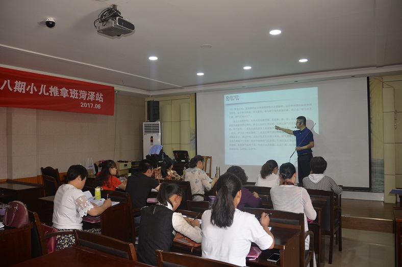 培训班每天下午和晚上进行,培训内容包括少儿推拿基本知识、常用穴位推拿手法,滥用抗生素对儿童健康的危害,小儿推拿作为一种无创、安全的治疗方法对小儿保健和常见病治疗的适用性及优势,小儿发热、厌食、便秘、腹泻的日常护理和治疗所需要的小儿推拿穴位处方等等。培训采取理论与实践相结合的形式进行,有理论有实验。场均参加人数约30余左右人。此次培训为普及少儿推拿知识,传承和弘扬中医传统文化将起到积极推动作用。