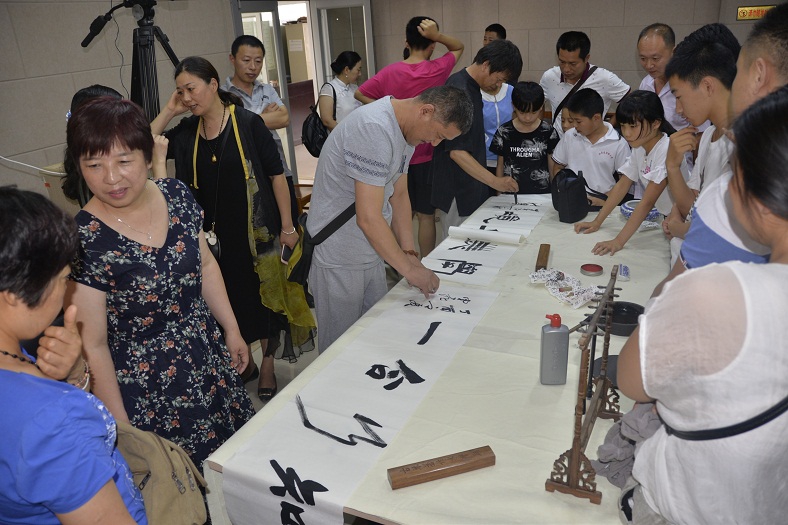 活动结束后,王洪举、王云飞、王宝奎三名书法家现场挥毫泼墨,为参加活动的所有人员赠送了与活动主题相关书法作品。