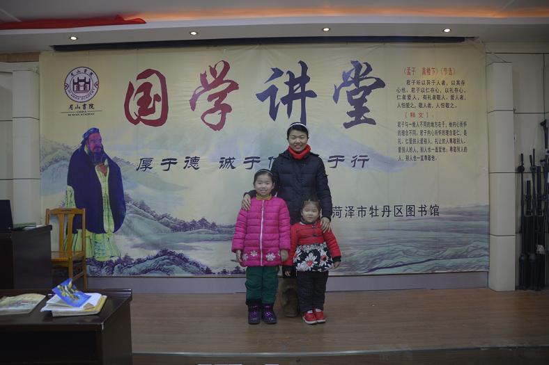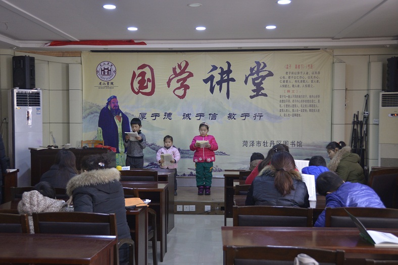 2月份,与牡丹区正念读书协会举办了两期“文化沙龙”活动;举办了为期6天的第五期国学经典诵读班国学冬令营,“同筑中国梦 共度书香年”楹联文化展,传统佳节挂图展,优秀少儿电影展播,“写春联 送祝福”、戏曲传唱等传统文化体验等活动;组织中小学生开展了图书馆志愿者服务和社会实验活动。
