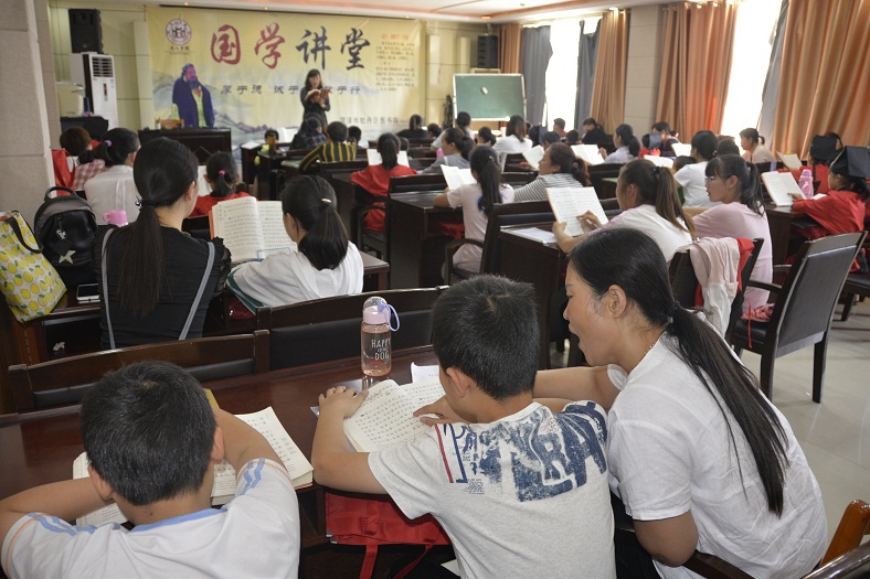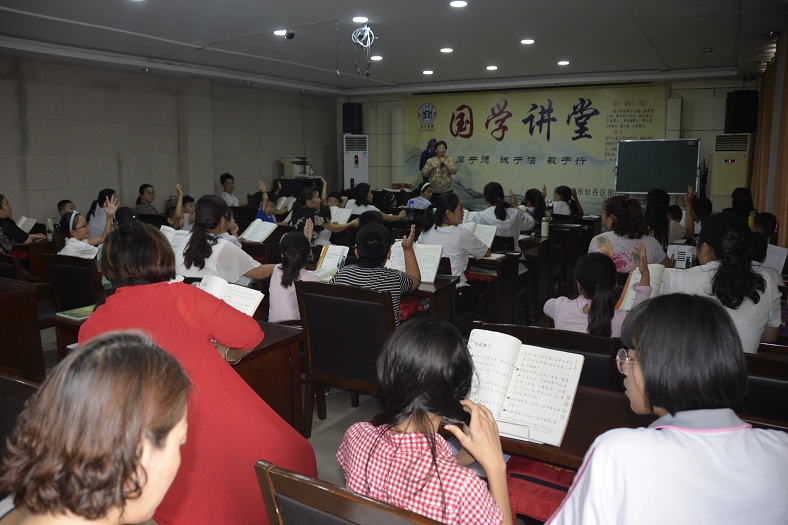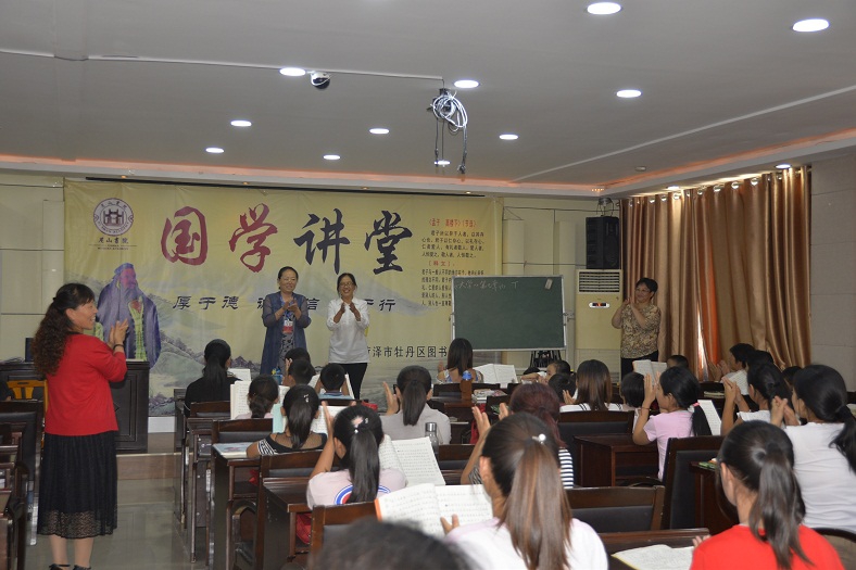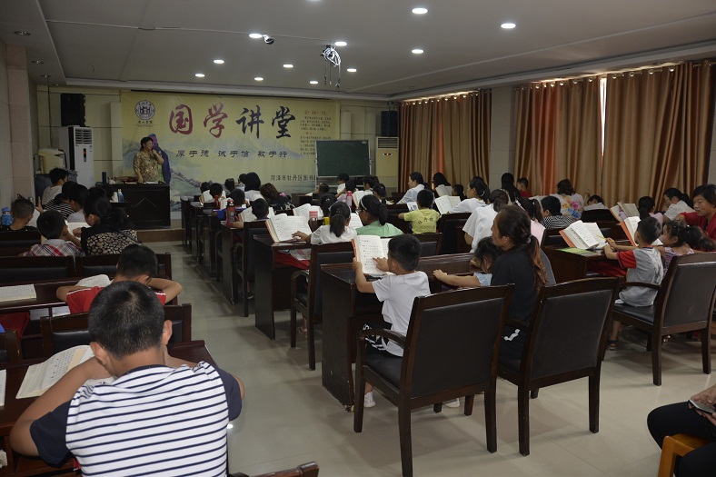 9月份,第六期国学亲子诵读初级班、中级班坚持每周六、周日下午正常上课,初级班主修课为《大学》,兼修课为《弟子规》、《声律启蒙》和《唐诗三百首》,中级班主修课为《论语》,兼修课为《常礼举要》、《笠翁对韵》和《唐诗三百首》,组织诵读班的学员们开展了图书馆主题游和中秋节传统文化体验活动;承接了牡丹区文化系统“扫黑除恶”推进会;举办了以“幸福人生”为主题的第三十五期公益读书会。
