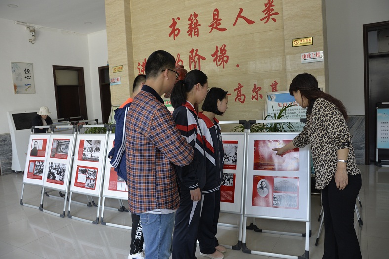参观纪念“五四运动”100周年图文展。