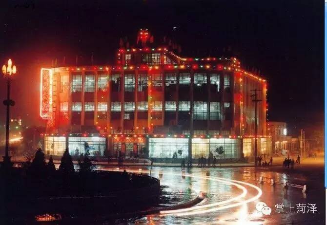 菏泽贸易大楼夜景-当初较为繁华壮观的三角花园街景。