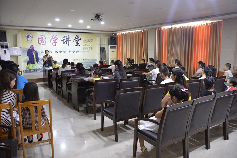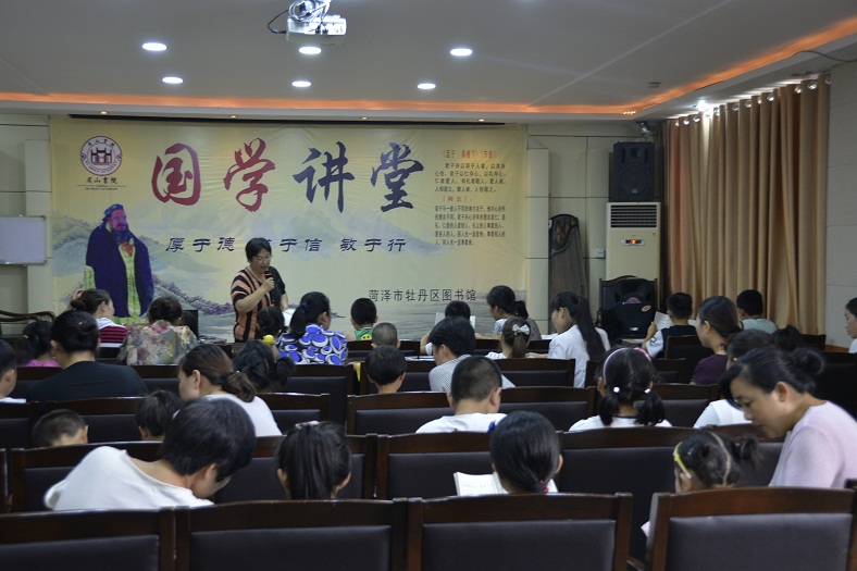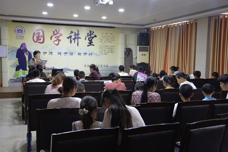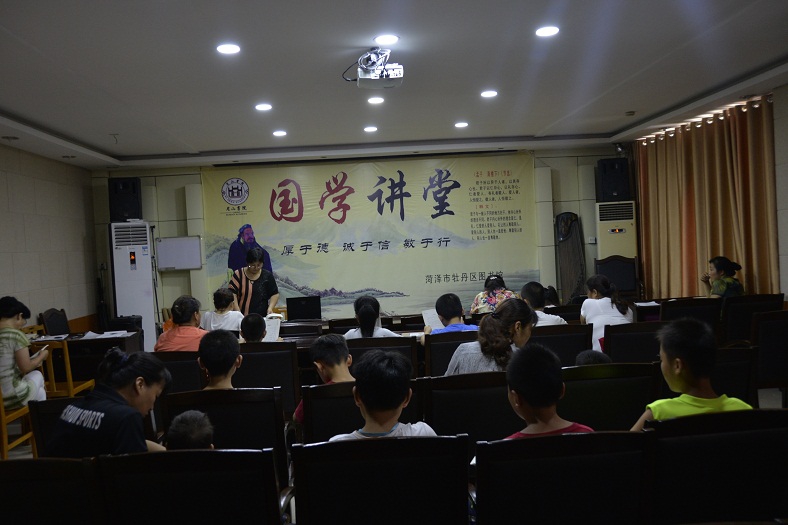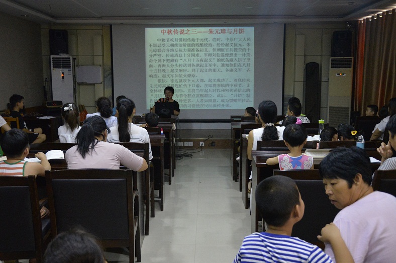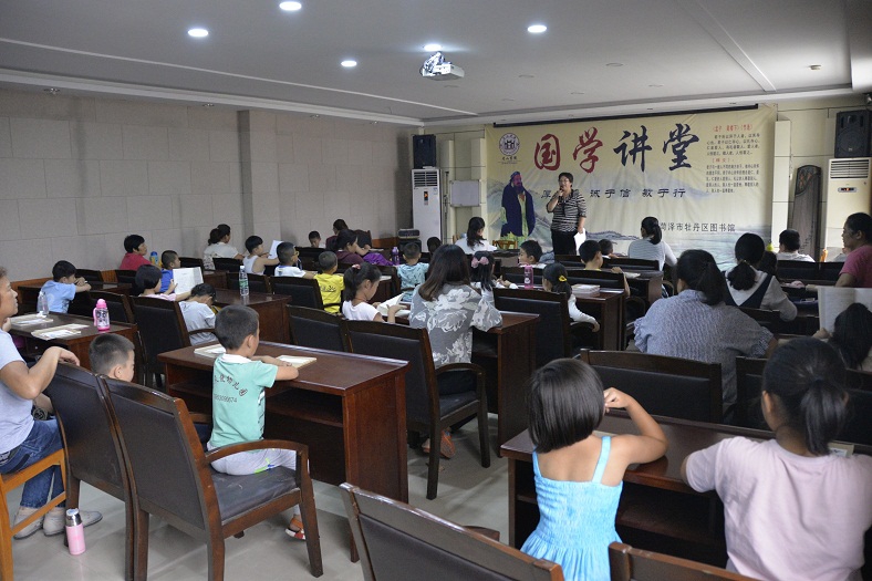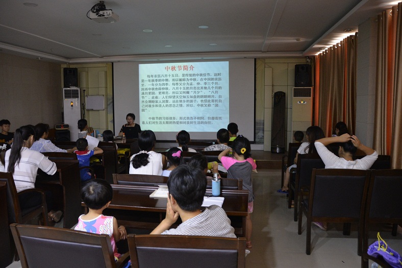 为了弘扬中华民族优秀传统文化,充分发挥图书馆公共文化阵地作用,喜迎我国传统节日——中秋节,9月11日下午,牡丹区图书馆尼山书院亲子读经班在结束了第十六讲之后,举行了一场别开生面的“中秋节传统文化体验课”,亲子读经班的30余对亲子学员们及图书馆志愿者参加了这次传统文化体验活动。体验课由牡丹区图书馆志愿者、国学老师汤晓红主讲,汤老师围绕中秋节的由来、传说、习俗、相关诗词等方面进行了精彩的讲述。讲座结束后,还举行了感恩在行动和才艺表演。感恩在行动环节,孩子们手捧我馆精心准备的月饼和水果,走到家长面前,深深地鞠上一躬后,把月饼和水果送到各自家长的手里,让家长享用月饼和水果同时,也让家长见证了孩子的成长;才艺表演环节,有古筝弹奏、诗朗诵、歌曲演唱、街舞表演等。孩子们争先恐后,好无保留地展示着自己才艺;家长们品尝着香甜美味的月饼和水果,欣赏着孩子们表演的节目,沉醉在幸福之中。活动现场气氛热烈,受到了读经班全体学员的一致欢迎和好评。