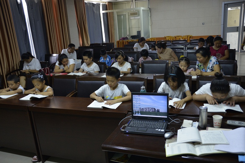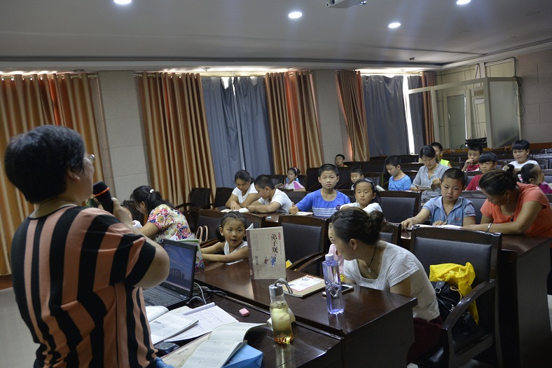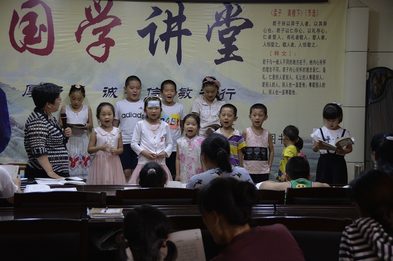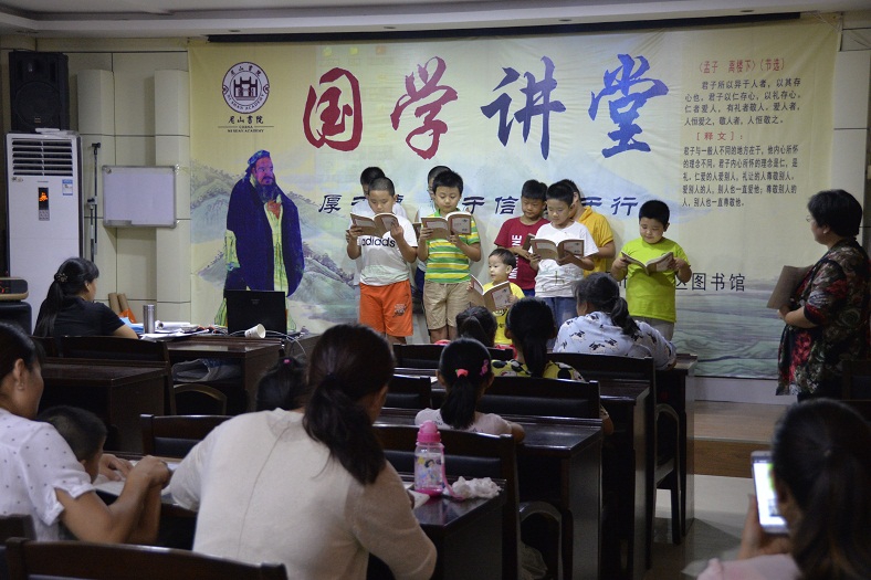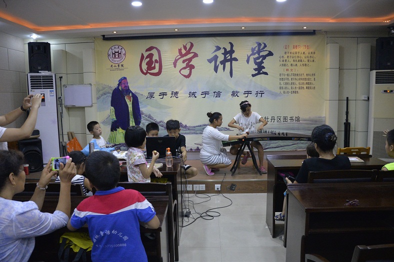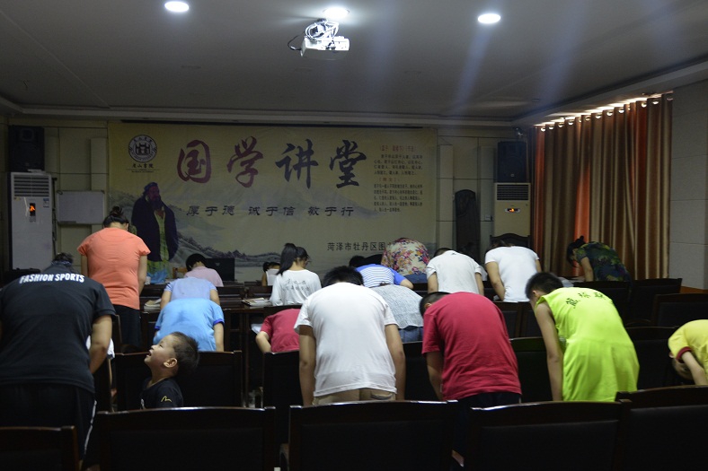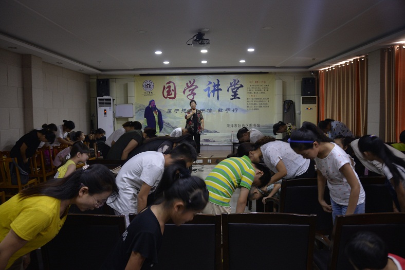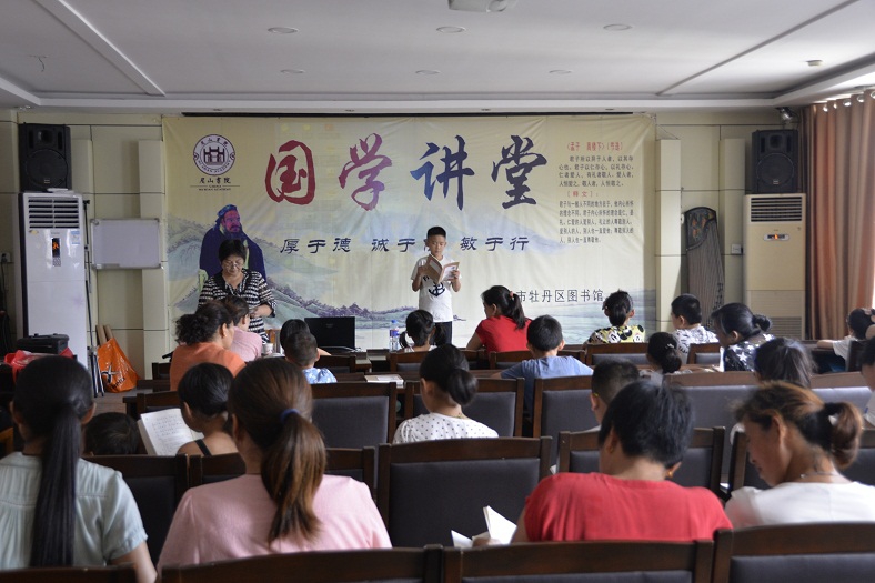 为了弘扬中华民族优秀传统文化,充分发挥图书馆公共文化阵地作用,喜迎我国传统节日——中秋节,9月11日下午,牡丹区图书馆尼山书院亲子读经班在结束了第十六讲之后,举行了一场别开生面的“中秋节传统文化体验课”,亲子读经班的30余对亲子学员们及图书馆志愿者参加了这次传统文化体验活动。体验课由牡丹区图书馆志愿者、国学老师汤晓红主讲,汤老师围绕中秋节的由来、传说、习俗、相关诗词等方面进行了精彩的讲述。讲座结束后,还举行了感恩在行动和才艺表演。感恩在行动环节,孩子们手捧我馆精心准备的月饼和水果,走到家长面前,深深地鞠上一躬后,把月饼和水果送到各自家长的手里,让家长享用月饼和水果同时,也让家长见证了孩子的成长;才艺表演环节,有古筝弹奏、诗朗诵、歌曲演唱、街舞表演等。孩子们争先恐后,好无保留地展示着自己才艺;家长们品尝着香甜美味的月饼和水果,欣赏着孩子们表演的节目,沉醉在幸福之中。活动现场气氛热烈,受到了读经班全体学员的一致欢迎和好评。