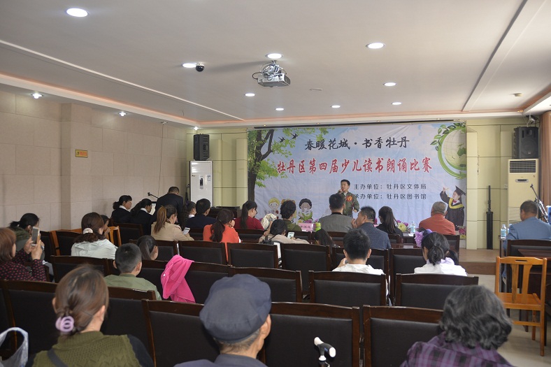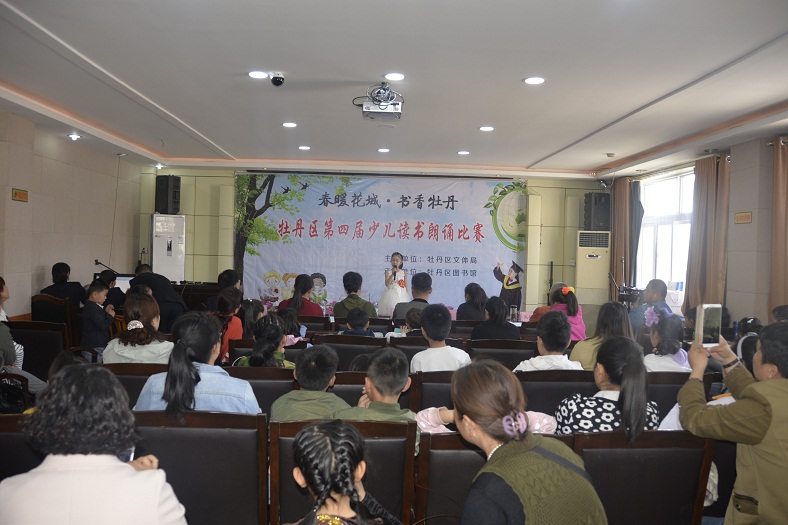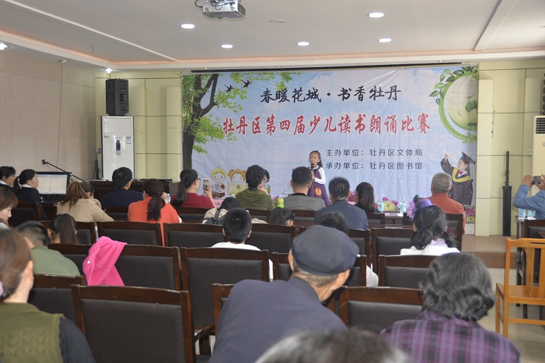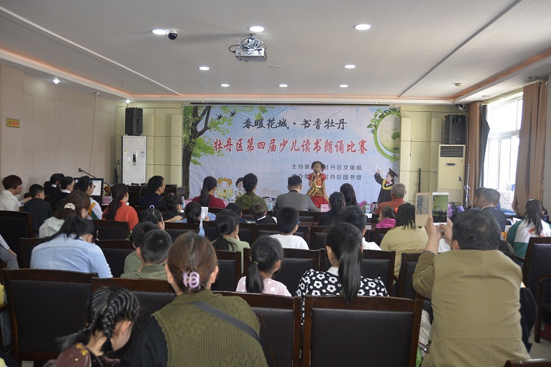 为贯彻落实《中华人民共和国公共文化服务保障法》,进一步发挥公共图书馆传承文明、开明启智的社会功能,通过全民参与、全民阅读的方式,在全社会营造团结和谐、奋发进取的氛围,让广大少年儿童从小养成“爱读书、读好书、好读书”的良好习惯,展现广大少儿儿童积极向上的精神风貌,丰富广大少儿儿童的精神文化生活。在第22个“世界读书日”来临之际,由牡丹区文体局主办、牡丹区图书馆承办的以“春暖花城·书香牡丹”为主题的牡丹区第四届少儿读书朗诵比赛,于4月22日上午在牡丹区图书馆国学讲堂举行。本次比赛旨在展示广大少年儿童的读书成果,激发少年儿童阅读热情,引导广大少儿小朋友“爱读书、读好书、善读书”,从小养成自觉阅读习惯。