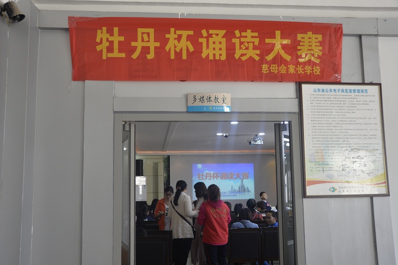 为贯彻落实《中华人民共和国公共文化服务保障法》,进一步发挥公共图书馆传承文明、开明启智的社会功能,通过全民参与、全民阅读的方式,在全社会营造团结和谐、奋发进取的氛围,让广大少年儿童从小养成“爱读书、读好书、好读书”的良好习惯,展现广大少儿儿童积极向上的精神风貌,丰富广大少儿儿童的精神文化生活。5月21日上午,由牡丹区妇联、牡丹区图书馆、牡丹区家庭教育研究会联合主办,菏泽电视少儿艺术团、北京国际婚纱摄影、孔子学院菏泽分院慈母家长学校、山东省青少年素质教育重点实践基地协办的“牡丹杯诵读大赛”预赛第二场在牡丹区图书馆二楼国学讲堂举行。