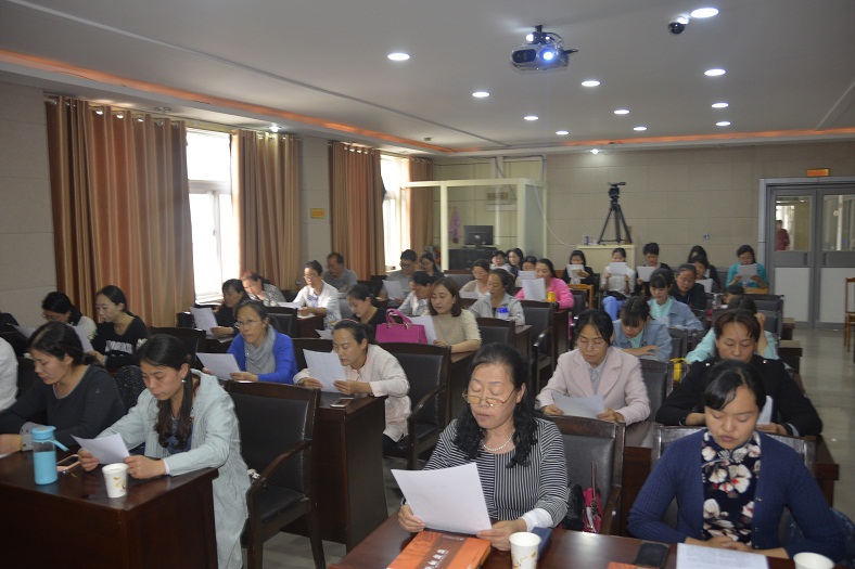 培训班在庄严的国歌声中拉开了帷幕,仁和书院国学讲师李昕芮领读了韩愈的《师说》,牡丹区图书馆党支部书王艳英向大家简单介绍了牡丹区图书馆尼山书院建设与活动开展情况,民革党员、菏泽市传统文化促进会理事、菏泽市图书馆尼山书院国学讲师、国学经典公益推广工作者、国家旅游局名导讲师、孝行天下讲师团成员、山东卫视特约主持人王蓉晖老师从国学基础知识、国学礼仪、朗诵技巧、国学教学方法、为什么要学习国学经典等方面向大家进行讲述,并对亲子诵读班上课流程进行了明确。要求亲子诵读班的家长们一定陪伴孩子一起诵读,孩子也渴望家长的陪读,亲子陪读,温馨亲密。诵读方法要灵活多变,可以领读、齐读、分组比赛诵读、接龙读、接句接字读等。培训结束后,大家还针对国学教学、亲子诵读班的开办展开了讨论和交流。