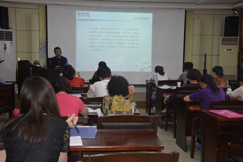 培训班每天下午和晚上进行,培训内容包括少儿推拿基本知识、常用穴位推拿手法,滥用抗生素对儿童健康的危害,小儿推拿作为一种无创、安全的治疗方法对小儿保健和常见病治疗的适用性及优势,小儿发热、厌食、便秘、腹泻的日常护理和治疗所需要的小儿推拿穴位处方等等。培训采取理论与实践相结合的形式进行,有理论有实验。场均参加人数约30余左右人。此次培训为普及少儿推拿知识,传承和弘扬中医传统文化将起到积极推动作用。