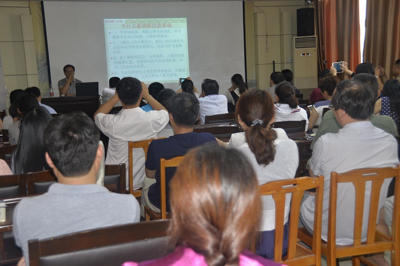 智老师结合大量的案例和考生实际,分别从考情分析、高考志愿填报批次和时间、高考志愿填报技巧、填报志愿需要的材料及使用等方面向大家进行深入浅出的讲解,着重讲述了本科提前批填报注意的事项、自主招生批注意的问题、普通本科平行志愿填报技巧以及三种专业分配原则及专业设置,受到了广大考生和家长的一致好评。考生和家长普遍反映,智老师的讲座让他们掌握了科学填报志愿的基本常识、方法和技巧,为他们填报志愿提供了很好的指导和参考,指点了迷津。整个国学讲堂座无虚席,70余名高考学生及家长亲临现场听取了讲座。