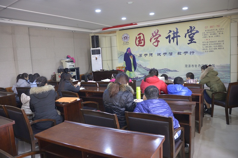 2月份,与牡丹区正念读书协会举办了两期“文化沙龙”活动;举办了为期6天的第五期国学经典诵读班国学冬令营,“同筑中国梦 共度书香年”楹联文化展,传统佳节挂图展,优秀少儿电影展播,“写春联 送祝福”、戏曲传唱等传统文化体验等活动;组织中小学生开展了图书馆志愿者服务和社会实验活动。