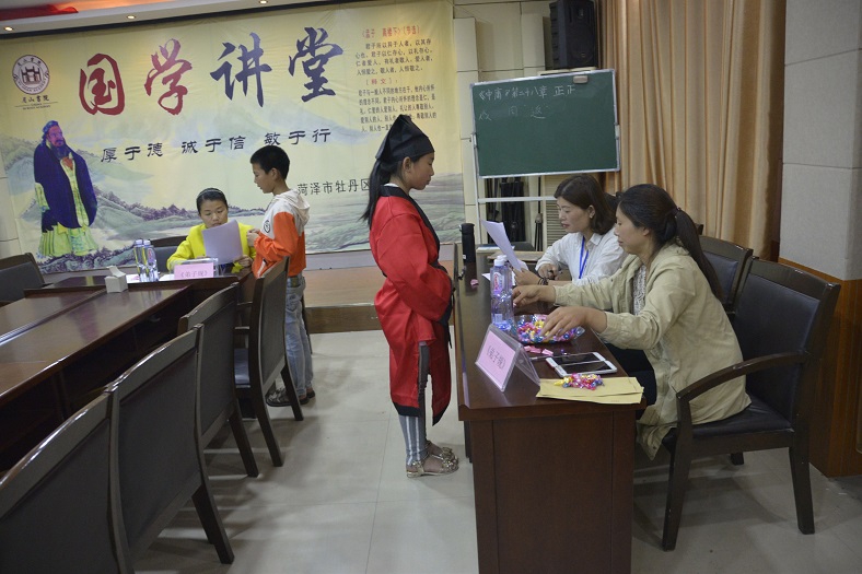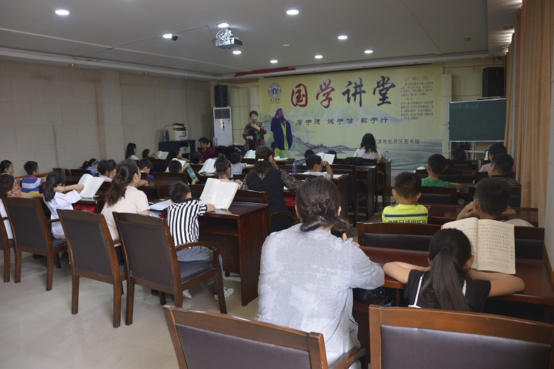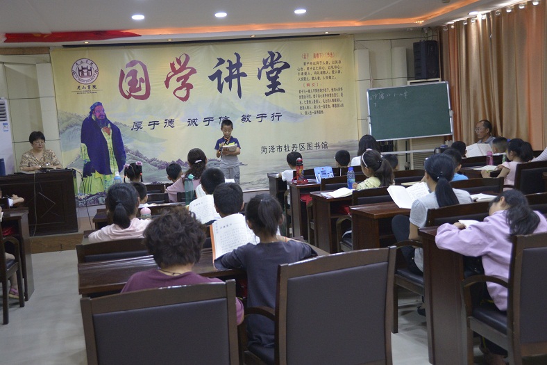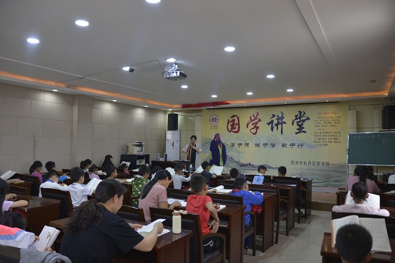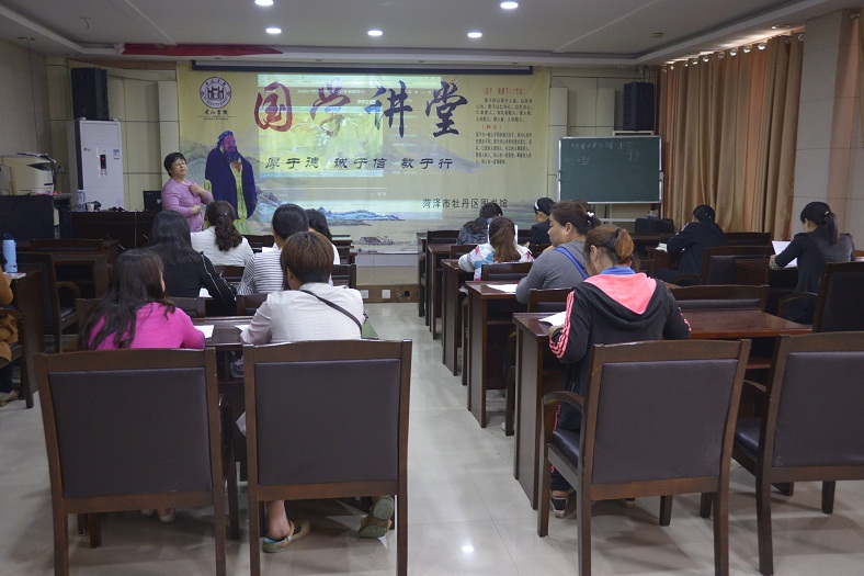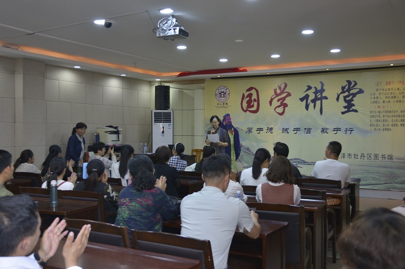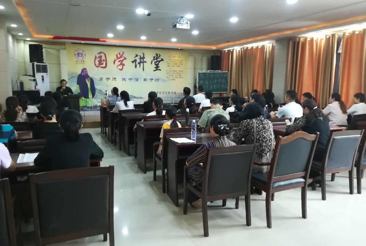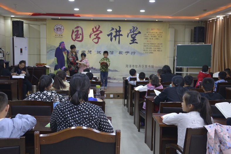 5月份,第周六下午的第五期国学亲子诵读初级班修完了《孝经》全部内容,进入结业验收考评阶段,每周日下午的第五期国学亲子诵读中级班主修的《中庸》也接近尾声,进入复习阶段,并开展了中华武术传统文化体验活动;举办两场国学经典亲子诵读班家长课堂,加强家长国学教育理念学习;举办了牡丹区国学经典成人读书会成立一周年总结表彰交流会;举办了一场高考志愿规划公益讲座;召开了全区文化站长会议,传达了《全省农家书屋建设督导检查通知》和菏泽市发改委、财政局、文广新局、体育局《关于推进文化馆图书馆总分馆制建设的实施意见》;15日下午,组织牡丹区文化中心四个单位(区图书馆、区文化馆、区文物保护管理所、区文化市场综合执法局)党员、预备党员及入学积极分子开展了“主题党日”,集体面向党旗,右手握拳,进行了入党宣誓,重温入党誓词,学习了牡丹区委区直机关工委《关于发展预备党员必须面向党旗入党宣誓的通知》和《关于发展党员工作有关注意事项的提示》以及《中共山东省委组织部关于发展党员工作提醒》。